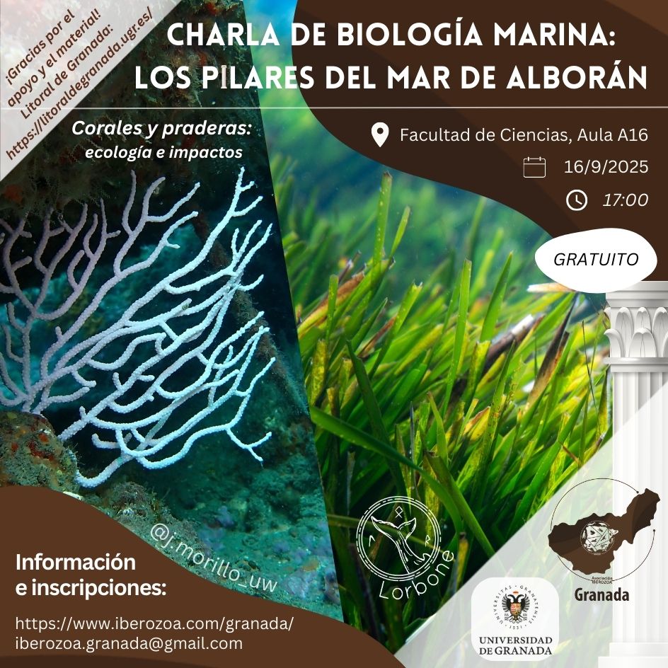 En esta charla de biología marina 🐠🌊 hablaremos en un tono divulgativo y no técnico 📚 sobre los hábitats más importantes de nuestro litoral: las praderas de algas 🌿, plantas marinas 🌱, y el coralígeno 🪸. Todos estos hábitats sustentan a una gran biodiversidad en nuestras aguas, por lo que su gestión es clave para la conservación de muchas especies marinas 🐟. Te explicaremos detalles de su ecología 🔬, sus servicios ecosistémicos 🌊 y los principales impactos de origen humano 🚢🏗️, así como generalidades sobre el mar de Alborán, de forma que todos los asistentes podrán comprender la importancia de estas especies 🐙🦀.