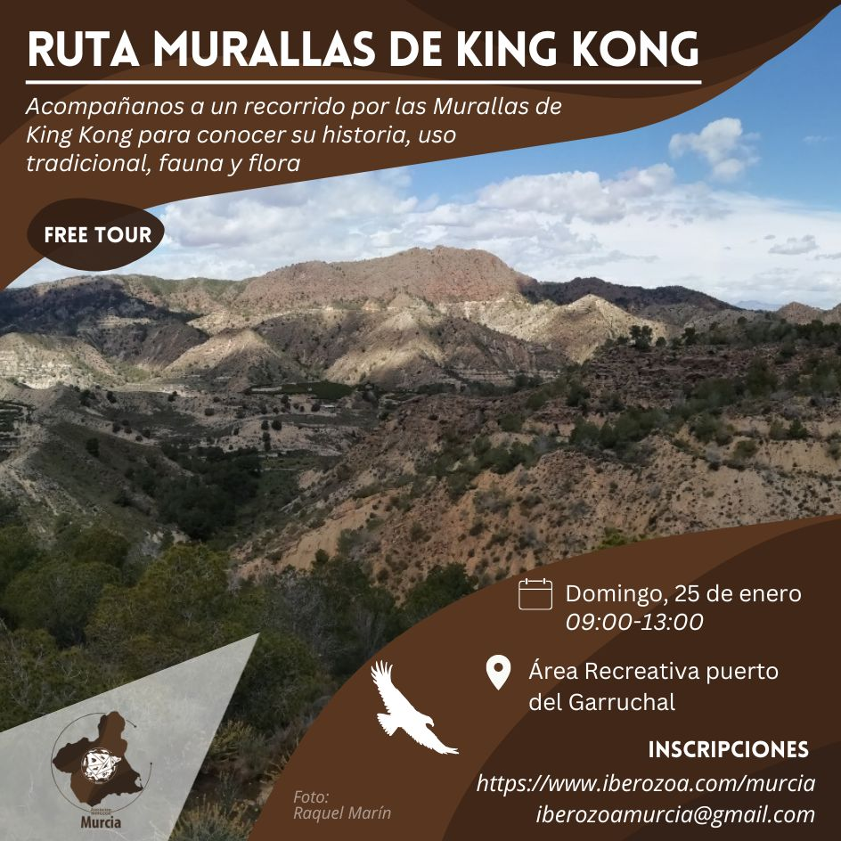 Te invitamos a vivir una experiencia única en las Murallas de King Kong, un enclave natural singular de la Región de Murcia donde el paisaje rocoso crea un escenario impresionante 🏔️. Durante la actividad recorreremos este espectacular entorno para conocer su valor geológico, la vegetación adaptada a la roca y la fauna que habita en este espacio tan característico 🔍🌲.