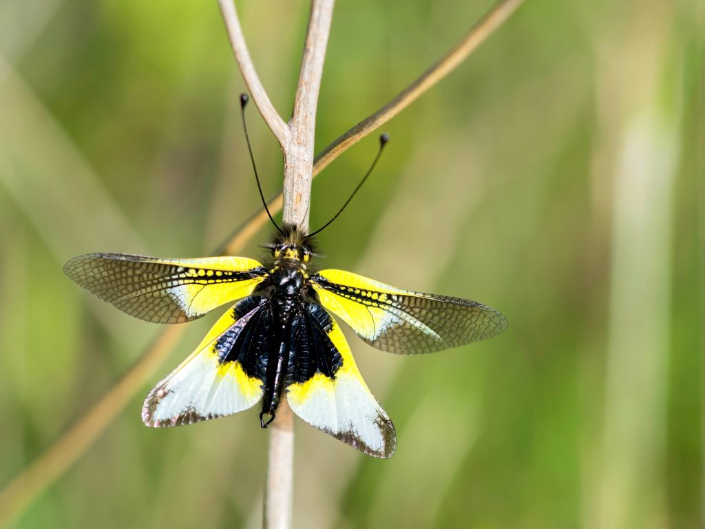 Fácil: insecto palo (Pijnackeria), Saga pedo, mantis palo (Empusa pennata) y otros mantodeos (Perlamantis alibertii, Apteromantis aptera…), lagartija de Valverde (Algyroides marchi), libélulas y caballitos del diablo, decenas de especies de mariposas diurnas como Polyommatus violetae y nocturnas como la polilla tigre (Arctia villica), zigénidos, neurópteros (Nemoptera bipennis, hormiga león o Palpares libelluloides, Libelloides baeticus…), escarabajos como Iberodorcadion, escorpiones, arácnidos (lycósidos, arañas cangrejo, argiopes…), ortópteros endémicos (Eumigus punctatus, Albarracinia zapateri, Pycnogaster sanchezgomezi, Petaloptila isabelae, Arcyptera microptera…) y en general cualquier grupo o especie de insecto y artrópodo (dípteros, himenópteros…). Son muchas especies, pero…¡es la verdad!